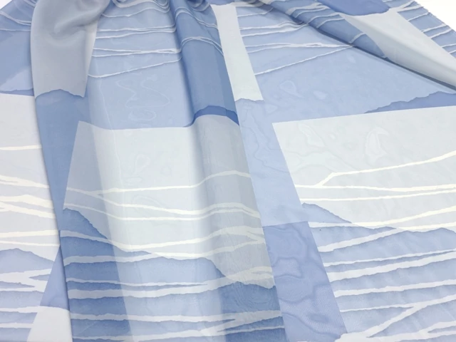 Kékes mintás nyomott voile, mely keskenyebb ablakra fényáteresztőnek, vagy kiegészítő dekornak is használható. Nincs benne ólomzsinór - magasságot kell megvenni.