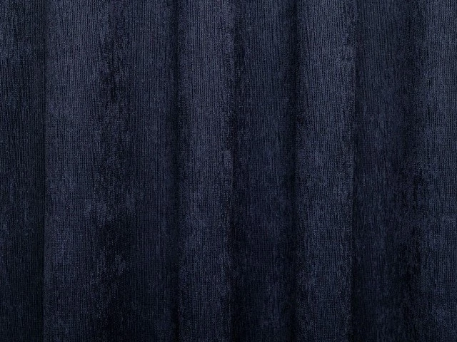 Sötétkék színű BLACKOUT sötétítő anyag. Szín oldalán szövöttes-zseníliás hatású, enyhén fényes, modern hatású. A blackout sötétítők 100% sötétítést biztosítanak. Letisztult, modern, minimalista elegancia jut róla eszünkbe (soft luxury).