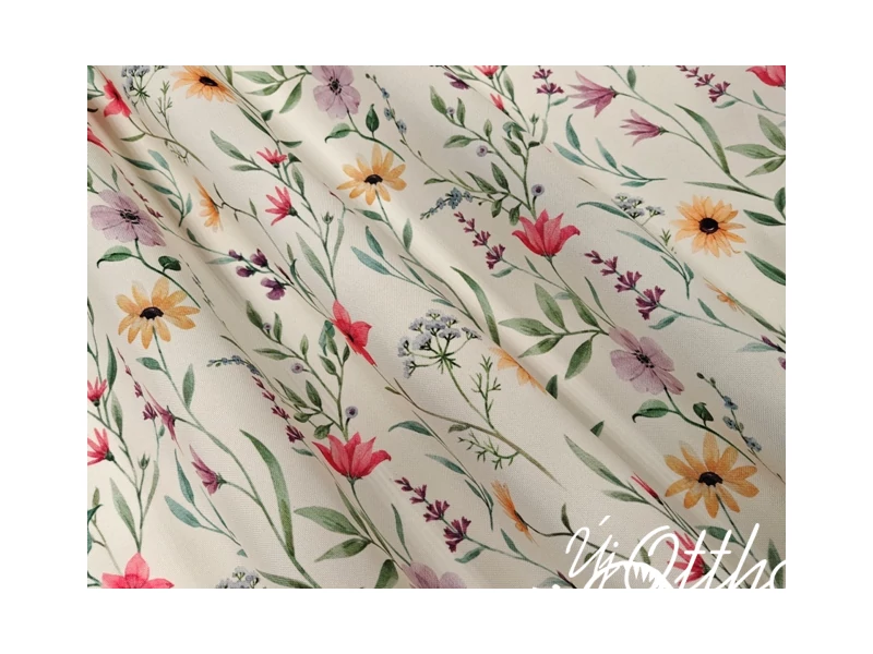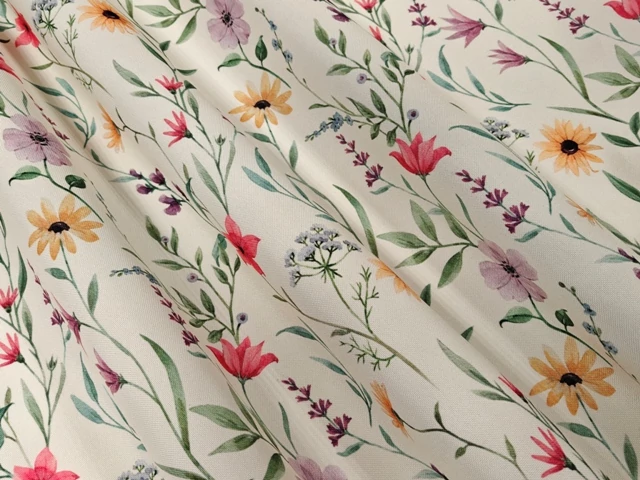 140cm széles, ekrü alapon gyönyörű tavaszi virágos, VÍZLEPERGETŐS dekor anyag. Mind abrosznak, mind pedig függönynek ideális választás.