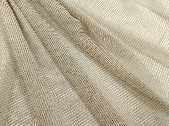 Lágy esésű, len bézs színű, szövött lenes dekor fényáteresztő függöny anyag. 280cm széles - NINCS ólomzsinór.