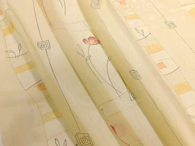 Vajsárga alapra nyomott virágos mintázatú, nagyon lágy dekor voile függöny anyag. Nincs ólomzsinór - magasságot kell venni. Konyhába, üdülőbe, vidéki házba, vagy csak szimplán dekorációnak.