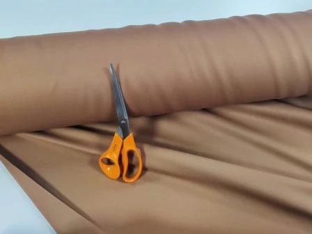 Dupla széles, kellemes világosabb barna árnyalatú, fény- és hőzáró dimout anyag. Szép esésű, jó sötétítő képességű. Pontos színmeghatározás érdekében kérjen mintát!